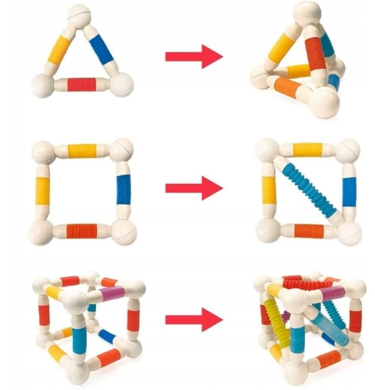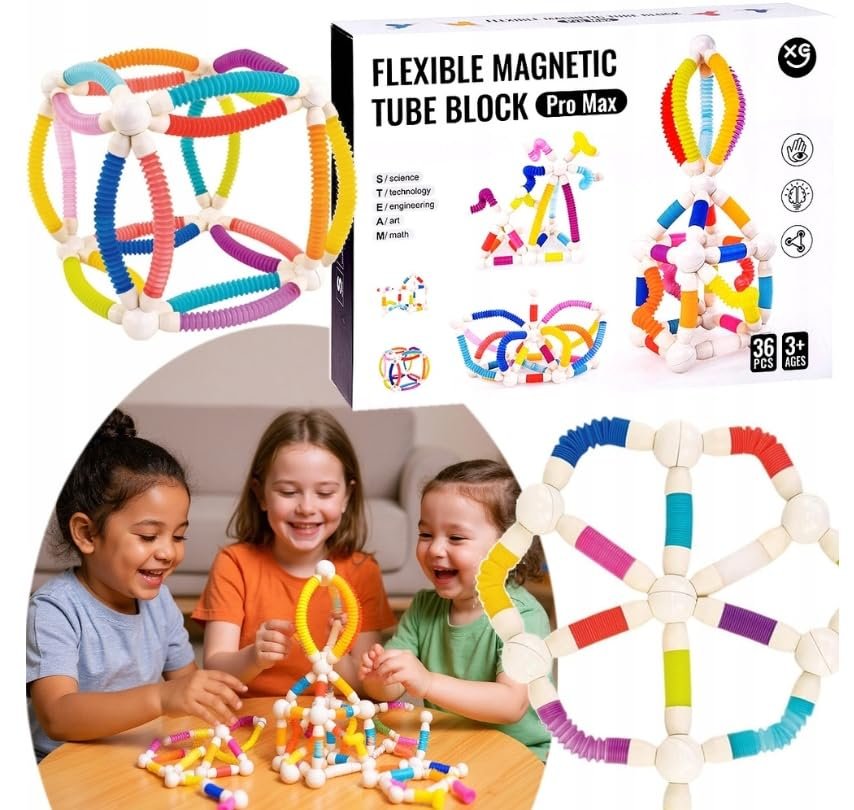 Tai ne šiaip kaladėlės – tai tikras kūrybos, bandymų ir atradimų rinkinys. Spalvingi, lankstūs vamzdeliai ir magnetiniai rutuliukai kviečia vaiką statyti, ardyti, perstatyti ir vėl iš naujo kurti bokštus, tunelius, tiltus ar net futuristines skulptūras. Kiekviena konstrukcija – naujas iššūkis.