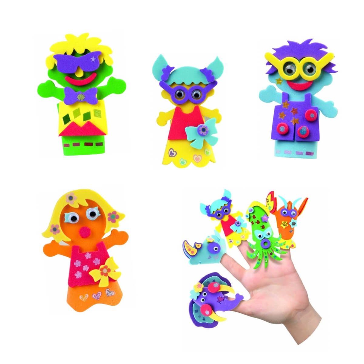 Pirštų lėlės „Vaikai” rinkinį sudaro: